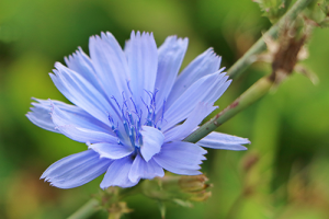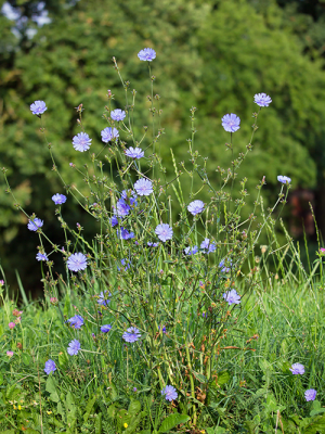 Als heimische und vielverehrte Heilpflanze hat es die Wegwarte weit in die Welt geschafft: Als eingewanderte bzw. eingeschleppte Pflanze findet man sie heute auch in Afrika und Südamerika. Doch warum ist die Gemeine Wegwarte zur „Heilpflanze des Jahres“ auserkoren worden? Welches sind ihre heilenden Inhaltsstoffe? Sowohl die Blätter als auch die Wurzel der Wegwarte werden getrocknet zur Teezubereitung genutzt. Er hilft bei Völlegefühl wie auch bei Appetitlosigkeit und wirkt anregend auf Magen, Leber, Galle und Darm. Dafür sorgen die enthaltenen Bitterstoffe wie Lactucin und Lactucopicrin, die außerdem schmerzlindernde Eigenschaften besitzen. Das Inulin, ein Inhaltsstoff der Wurzel, erlangt zunehmende wirtschaftliche Bedeutung als Fettersatz in Lebensmitteln wie beispielsweise Joghurt. Wegwartenblätter können im Frühjahr eine köstliche Zutat für knackige Salate sein: Die zarten, jungen Blätter sind leicht bitter, sind mild im Geschmack und liefern viele wertvolle Mineralien.