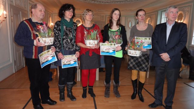 Auf dem Gruppenfoto sehen Sie die Gewinner der ersten drei Plätze von links nach rechts: Jochen Hiebel, Katja Freund und Heike Seidel (3. Platz), Tanja Kahmann (1. Platz) und Katja Huhle (2.Platz). Jurymitglied Herr Ullrich Erzigkeit (im Gruppenfoto rechts) ist zur Preisverleihung eigens angereist.