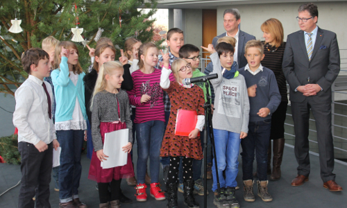 Schülerinnen und Schüler der Lichterfelder „Draußenschule“ haben mit selbst gebasteltem Baumbehang dem diesjährigen Weihnachtsbaum im Bundestag ein buntes Kleid verpasst und ein weihnachtliches Programm einstudiert.