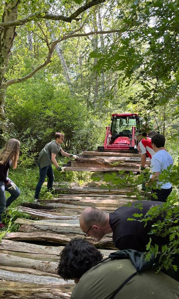 Freiwillige erneuern einen Bohlenweg © Isabel Nacke