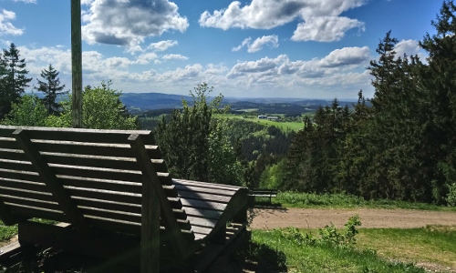 Vom Prinz-Luitpold-Turm auf dem Döbraberg bietet sich ein herrlicher Rundum-Blick über den Frankenwald hinein ins Fichtelgebirge, den Thüringer Wald, das Erzgebirge und das Coburger Land. Hier trifft sich eine Vielzahl von Wanderwegen, darunter unser FrankenwaldSteig, der Qualitätsweg Frankenweg und zwei zertifizierte FrankenwaldSteigla. Mehrere Schutzhütten, Sitzgruppen und auch eine Panoramaliege laden zu einer gemütlichen Rast ein.