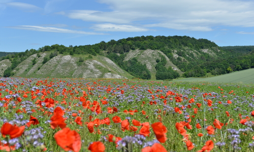 Im Frühling leuchten die Adonisröschen und Kuhschellen von den sonnenbeschienenen Gipshängen am Weg, im Frühsommer duftet das Meer der Obstblühten in der Nähe des Kyffhäuser Denkmals und am Schlachtberg in Bad Frankenhausen, im Sommer erfrischt der Schatten der uralten Baumriesen im Bendeleber Park und im Herbst ist es der Ruf der Kraniche, die das Naturerlebnis „Kyffhäuserweg“ unvergessen machen.