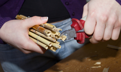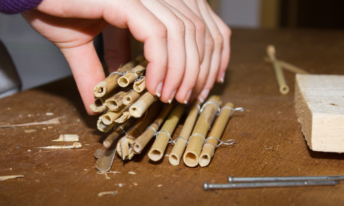 Rollt zum Beispiel ein Bündel Schilfhalme so zusammen, wie es auf den folgenden Fotos gezeigt wird oder füllt die Löcher eines Hohlziegels, mit Halmen. Möglichkeiten gibt es sehr viele. Gebt ihr in eurer Suchmaschine ‚Insektenhotel‘ ein, bekommt ihr zahlreiche Vorschläge.