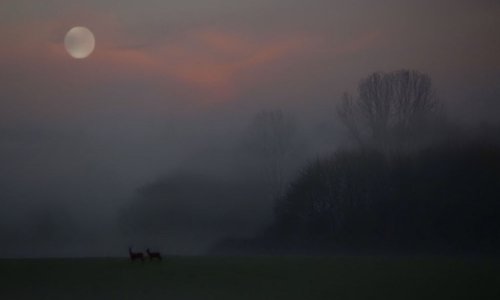 „Etwas Unwirkliches haftet dieser Szenerie an, in der das Licht des Vollmondes gerade von der aufziehenden Morgendämmerung abgelöst wird. Unwirklich, weil durch die stimmungsvolle, an David Hamilton erinnernde Ästhetik zunächst unklar bleibt, ob hier überhaupt mit (konventionellen) fotografischen Mitteln gearbeitet wurde. Die auf wenige Bild- und (Farb-) Ton-Elemente reduzierte Landschaftsaufnahme zeigt ein Idyll, in dessen Mittelpunkt, ungestört, einsam und in perfekter Seitenansicht, zwei Wildtiere stehen. Auf überzeugende Weise gelingt es dem Fotografen so, einen Sehnsuchtsort zu erschaffen, in dem die Natur, zumindest zu dieser Stunde, noch magisch und unberührt erscheint.“