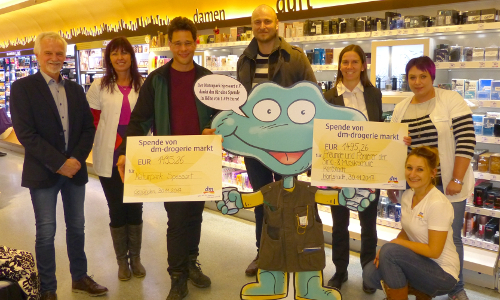 Die Leiterinnen der beteiligten dm-Märkte überreichten den Spendenscheck Ende November in Gemünden an Naturpark Geschäftsführer Oliver Kaiser und Jürgen Goldbach, Leiter der Jugendherberge Lohr. Auch weitere gemeinnützige Vereine aus der Region konnten sich über eine Spende freuen, darunter auch der Förderverein der Musikschule Karlstadt am Main.