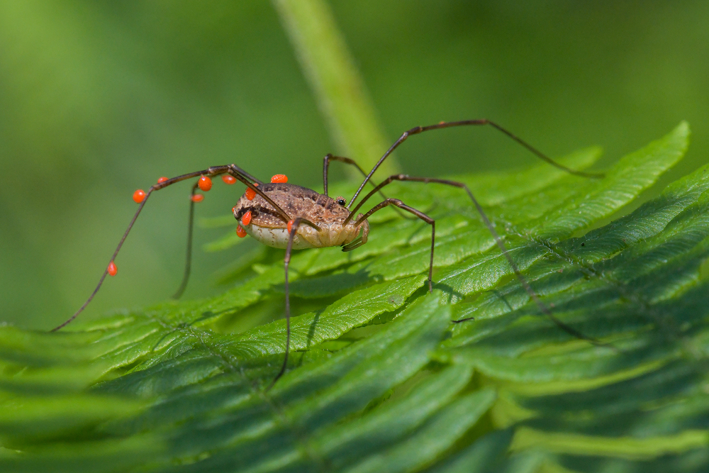 Eine ganz besondere Lebensgemeinschaft präsentierte Susanne Wunn zum Thema des Monats Juli im Fotowettbewerb „Augenblick Natur!“ und belegte mit ihrem Foto eines Weberknechts, der (unfreiwillig) einige Milben transportiert, den ersten Platz.