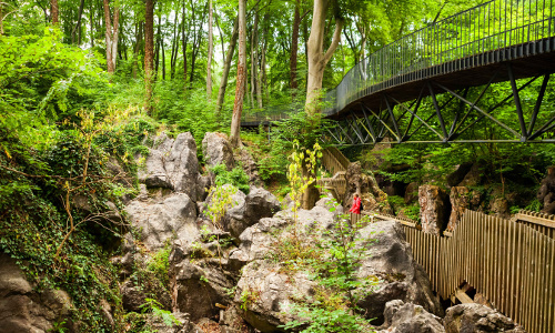 Gegenüber des Infozentrums befinden sich das Felsenmeer und die Heinrichshöhle. Die wild zerklüftete Felsenlandschaft gehört zu den bedeutendsten Geotopen Deutschlands. Hier wurde der bislang älteste Eisenerzabbau in ganz Nordrhein-Westfalen nachgewiesen. Eine barrierefreie Brücke ermöglicht es, die unzugänglichen Felsformationen zu überqueren und eröffnet einen überwältigenden Blick über das Felsenmeer. Über einen Holzsteg und eine Aussichtsplattform können die Gesteinsformationen im dichten Buchenwald erkundet werden. Die verschiedenen Wege ermöglichen eine kurze Wanderung von ungefähr einer Stunde Dauer. Wie es unter den Felsen und Buchen aussieht, wird in der nahegelegenen Heinrichshöhle und im höhlen- und karstkundlichen Informationszentrum deutlich. Sie sind ebenfalls für Besucher geöffnet (www.hiz-hemer.de).