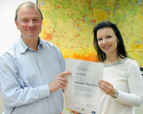 In der Verwaltung des Naturparks Dahme-Heideseen in Prieros überreichte am 11. Dezember 2015 Parkleiter Gunnar Heyne der Bundestagsabgeordneten Jana Schimke ihre Naturpark-Botschafterurkunde. Gemeinsam mit Parkleiter Heyne und Ranger Mertke sprach Jana Schimke anschließend über die Herausforderungen des Naturschutzes und über die zukünftige gemeinsame Zusammenarbeit.