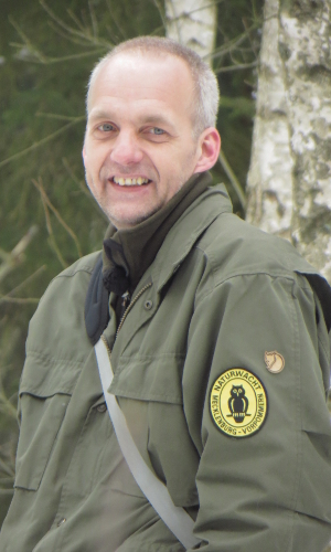 Mario Krüger ist seit 2005 im Naturpark Sternberger Seenland in der Naturwacht tätig, deren Leiter er inzwischen geworden ist. Zu seinen Arbeitsaufgaben gehört auch das regelmäßige Monitoring zur Erfassung der vorhandenen Biberpopulation im Naturpark. Da diese Aufgabe sich mit seinen persönlichen Interessen deckt, hat er sich im Laufe der Jahre immer wieder zum Thema Biber fortgebildet und gilt inzwischen in Mecklenburg als anerkannter Biberexperte. Aus anderen Großschutzgebieten kommen immer wieder Anfragen, was bei auftauchenden Problemen mit Bibern getan werden kann. Hier steht er dann den Kollegen mit Rat (und manchmal auch Tat) helfend zur Seite.