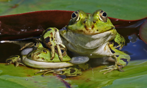 Frösche nehmen gegenüber ihren Artgenossen beim Kampf um das Revier oder paarungsbereite Exemplare keine Rücksicht. Das Gewinnerfoto – eine Momentaufnahme eines Revierkampfes, bei dem es Sieger und Verlierer gibt –  gelang Naturfotografin Angelika Hecht im Naturpark Schönbuch. Die Jury zeigte sich beeindruckt: