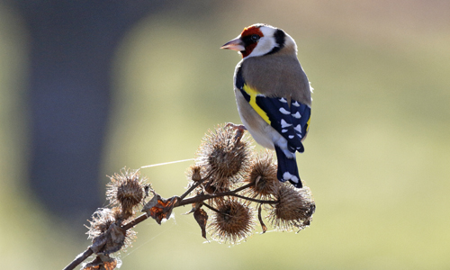 Der Stieglitz (Carduelis carduelis) gehört zu den buntesten Singvögeln in Europa. Auffällig ist neben dem farbenfreudigen Äußeren aber auch das laute Zwitschern: Am häufigsten ertönt ein helles, mehrsilbiges „stiglit“, „didelit“ oder „didlilit“, welches den Tieren auch ihren deutschen Namen einbrachte. Männchen und Weibchen ähneln sich äußerlich zwar stark, lassen sich aber gut an der Ausprägung der roten Gesichtsmaske unterscheiden: Beim Männchen fasst sie den hinteren Rand des Auges beidseitig ein oder ragt darüber hinaus. Die etwas kleinere Maske des Weibchens reicht hingegen nicht bis zum Augenrand. Im Gegensatz zu den meisten anderen Singvögeln singen auch weibliche Tiere, jedoch weniger laut und anhaltend als die Männchen. Stieglitze sind mit einer Körperlänge von 12 bis 13 Zentimetern etwas kleiner als Spatzen und wiegen ungefähr so viel wie zwei Ein-Euro-Stücke.