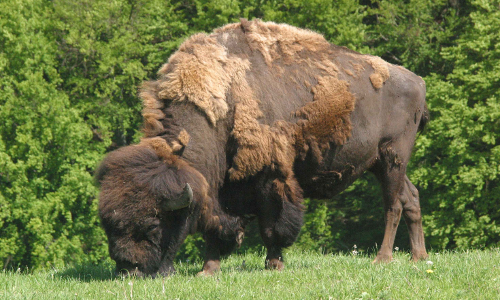 Imposante Wisente grasen gemeinsam mit Wildpferden und weißen Hirschen auf großen Weiden am Fuße des Dornröschenschloss Sababurg. Insgesamt über 900 Tiere bei 80 verschiedenen Tierarten leben im 1300 ha großen Tierpark Sababurg.