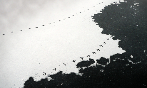 In Ihrer Laudatio schreibt die Jury: „Die Aufnahme „Überflug“ ist ein gelungenes Beispiel dafür, wie durch Reduktion auf das Wesentliche und die Darstellung eines kleinen Bereiches der Wirklichkeit ein spannungsvolles Bild entstehen kann. Das Schwarz-Weiß-Bild besteht aus drei Elementen: Die dunkle, fast schwarze Oberfläche eines gefrorenen Gewässers, eine dünne, weiße Schneeschicht und die Fußspuren von zwei Vögeln, die ihre Abdrücke im Schnee hinterlassen haben. Zusätzlich ergibt sich eine zweite Lesart des Bildes. Die dunklen und hellen Stellen wirken wie die Zeichnung einer Landkarte, die Fußabdrücke wie Flugrouten, die Punkte auf dem Festland verbinden, ein Werbeplakat eines Reisebüros der 40er Jahre…“