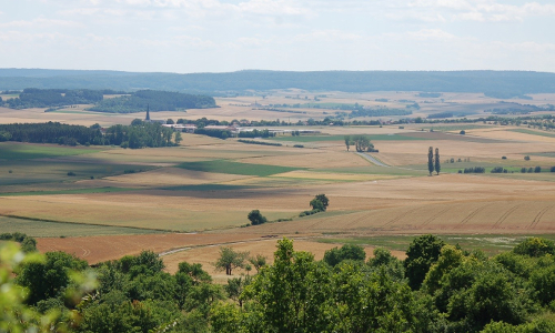 Nach dem Auf und Ab am Grenzweg geht es durch Niederwald und am alten Gipssteinbruch vorbei. Die letzten beiden Stationen sind das Storchenbrünnlein und das neu renovierte Schloss Trappstadt. Von dort gelangt man schnell zum Ausgangspunkt der Wanderung.